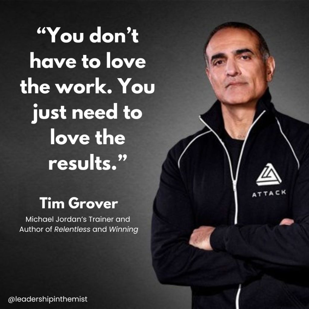 When it comes time to get to work, he says, “You don’t have to love the work. You just need to love the results.”