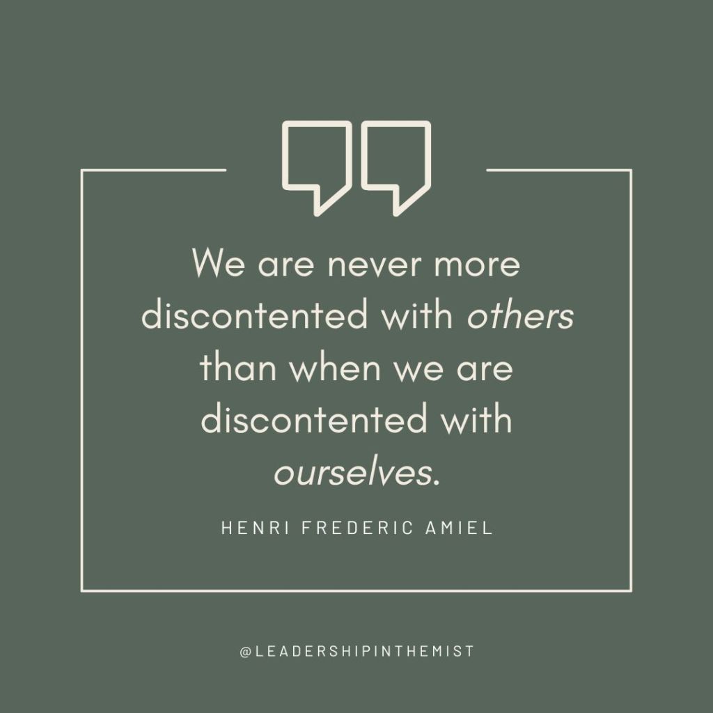 This is what Amiel is getting at with his quote, “We are never more discontented with others than when we are discontented with ourselves.”